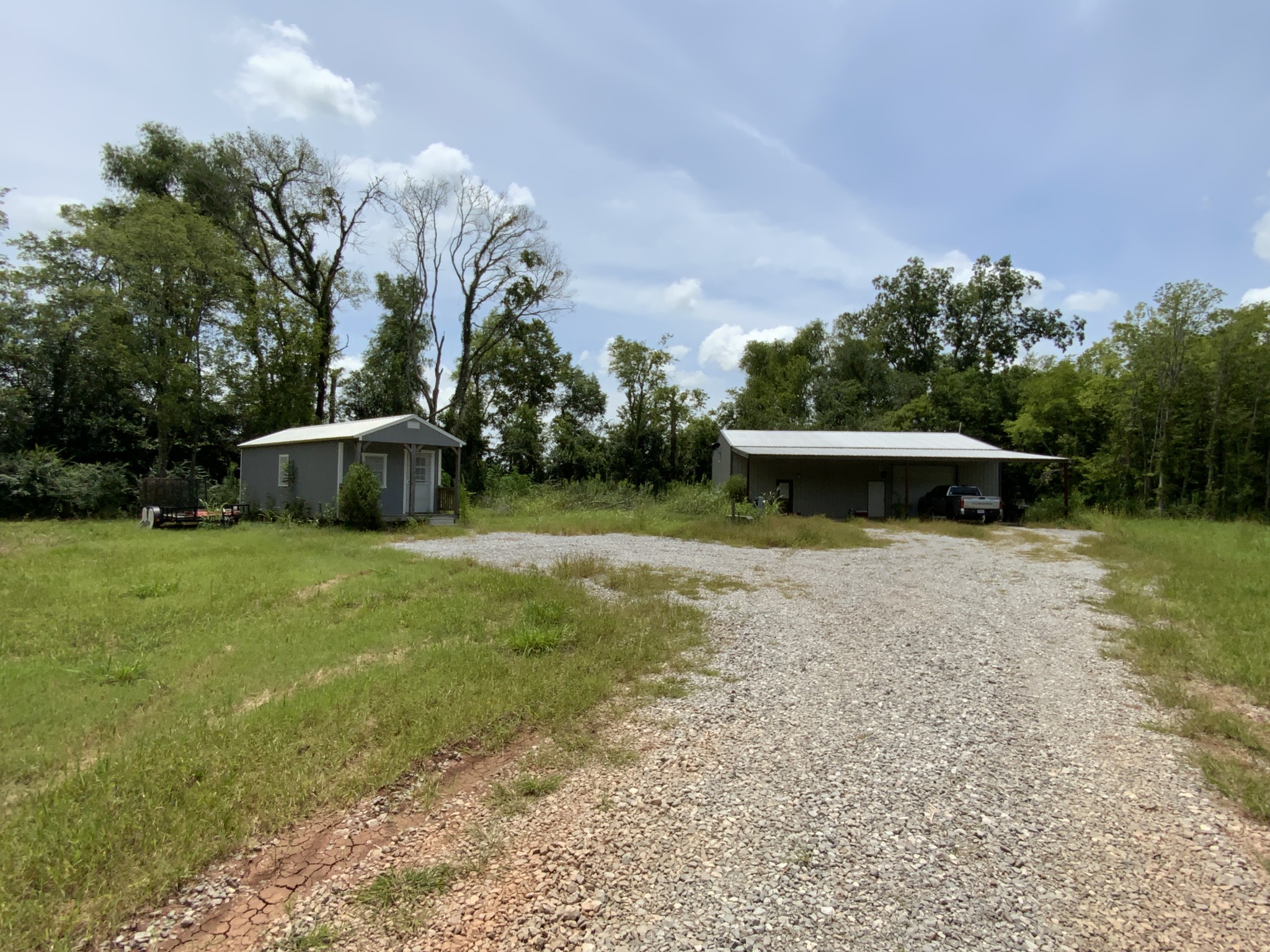 The property already features a Barn-dominium style structure that’s finished out nicely as a one bedroom/one bath apartment and living area with the remaining building set up as shop for utility and equipment storage. There’s a nice 1200’sq/ft tiny home on the property that works out well for guest quarters and a 1/4 acre fishing pond that’s been stocked with bass and bream and are getting good eating size.